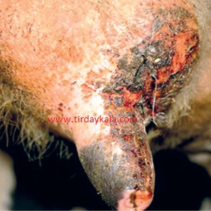 گاهی در بعضی گاوها پستان بزرگ و سفید رنگ به صورت یک طرفه در مواجهه با آفتاب دچار آفتاب سوختگی می شود. محل آفتاب سوخته با حضور حشرات و عدم رعایت بهداشت، تبدیل به زخم های پوستی می شود.