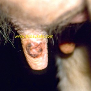 محتمل ترین دلیل این ضایعه باکتری فوزوباکتریوم نکروفورم است. این بیماری می تواند منجر به بروز ورم پستان گردد.