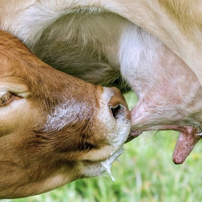 گوساله زبان خود را بر روی سرپستان قرار می دهد. سپس با فشار پستان توسط زبان (دستور از مغز) و همزمان ایجاد حالت مکش در دهان (دستور از مغز)، شیر را می مکد. سپس زبان کمی شل (دستور از مغز) و شیر بلعیده می شود. در مکش بعدی (با فرمان مغز) گوساله دوباره زبان خود را منقبض می کند و فرایند تکرار می شود.