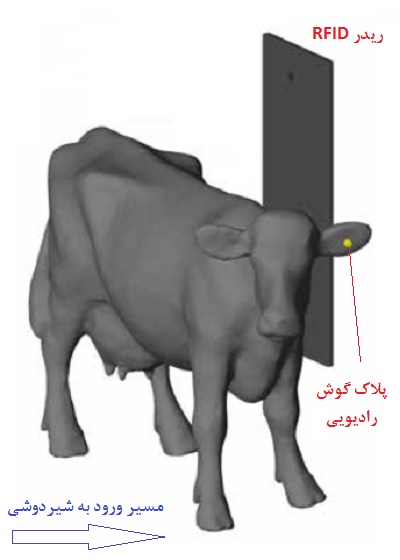 اکنون می بایست ورود دام به داخل سالن شیردوشی در سیستم ثبت گردد. به این منظور دام می بایست از داخل یک گیت شناسایی عبور کند تا ورود او به داخل شیردوشی شناسایی شود.