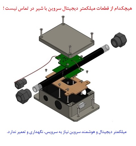 اکنون عدم تماس سنسورهای تشخیص حجم شیر با محلول شستشوی شیردوشی، اهمیت بیشتری پیدا می کند. زیرا سنسورهای میلکومتر مکانیکی، همواره در خطر رسوب گیری (رسوب سنگ شیر بر روی سنسور و تشخیص نادرست)، کاهش حساسیت به علت تاثیر شیمیایی قلیا و اسید بر روی جداره سنسور و خرابی زودتر از موعد قرار دارند. بنابراین با این توضیح مختصر مشخص می شود که به چه علت هزینه نگهداری میلکمتر دیجیتال بسیار پایین می باشد.