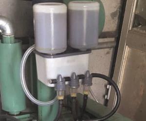 پیچ چهارسوی بالای قطره چکان ها را سفت کنید. اکنون مخزن را از روغن پر نمایید. به آرامی اقدام به شل کردن پیچ ها کنید. روغندان را به گونه ای تنظیم کنید که هر ده ثانیه، یک قطره به داخل محفظه بچکد.